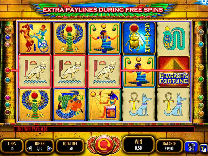 El juego gratis de Pharaohs Fortune no ofrece posibilidades de ganancia pero, una vez decides probar suerte en su versión de dinero real, disfrutas de 15 líneas en las que puedes ganar. Aunado a ello, ofrece una serie de símbolos que maximizan los premios disponibles en varios sentidos.